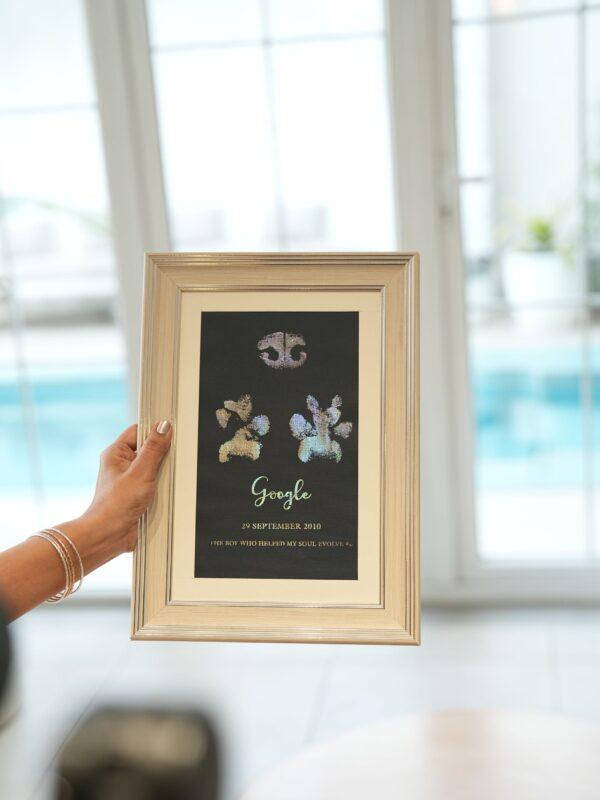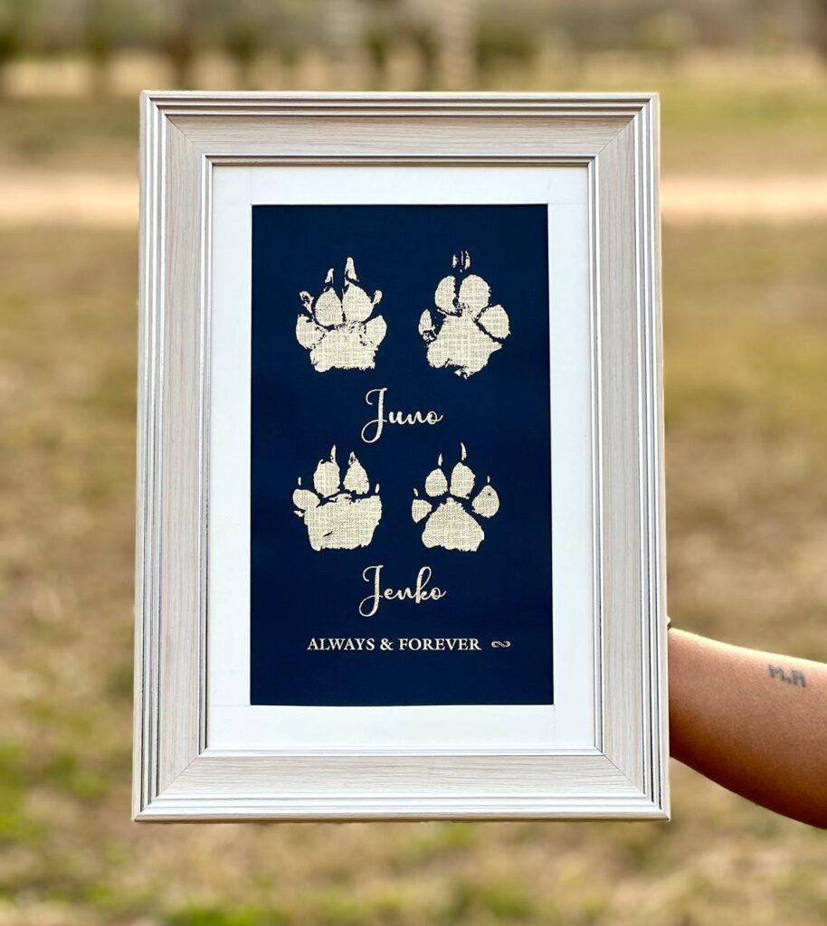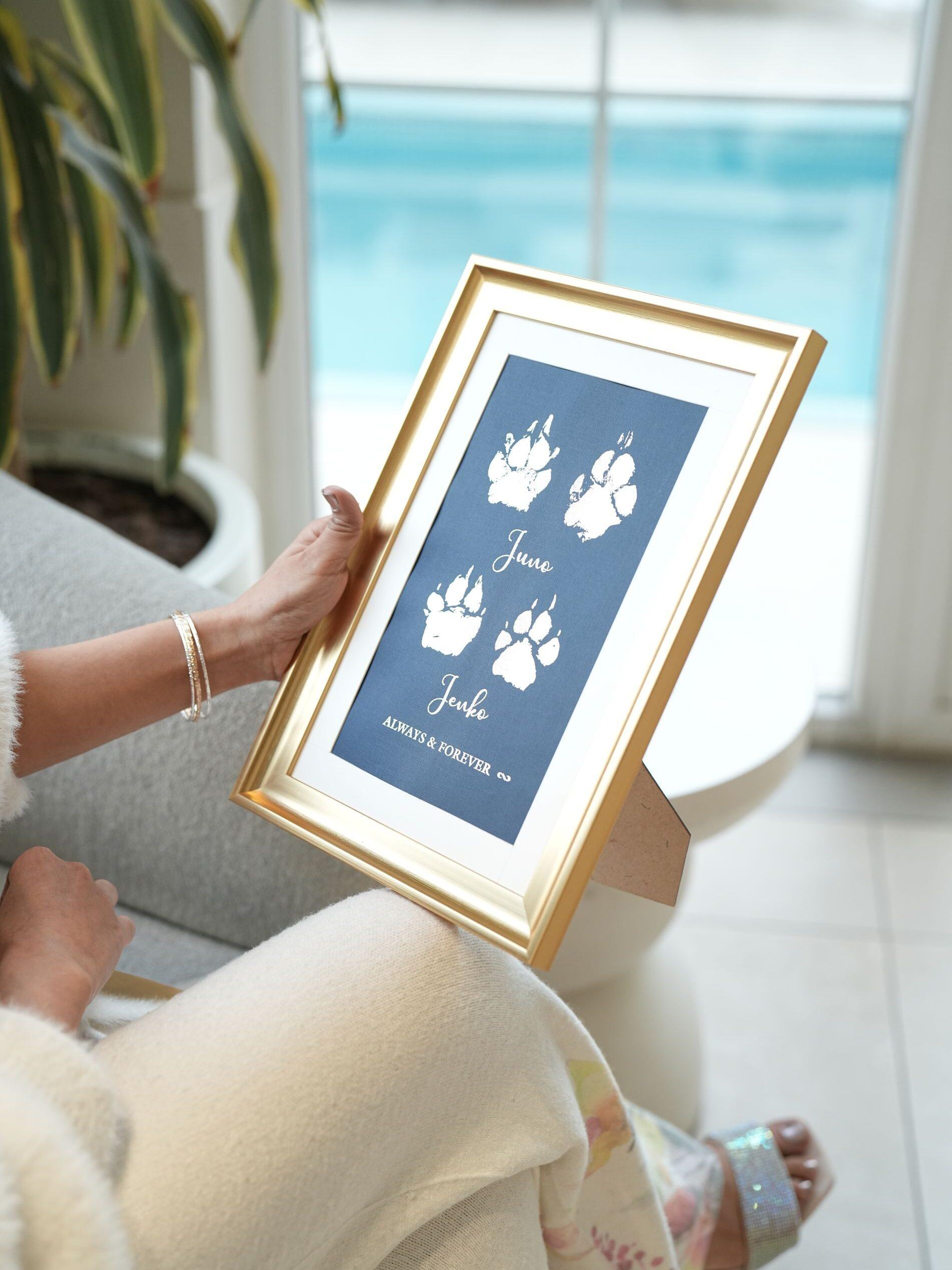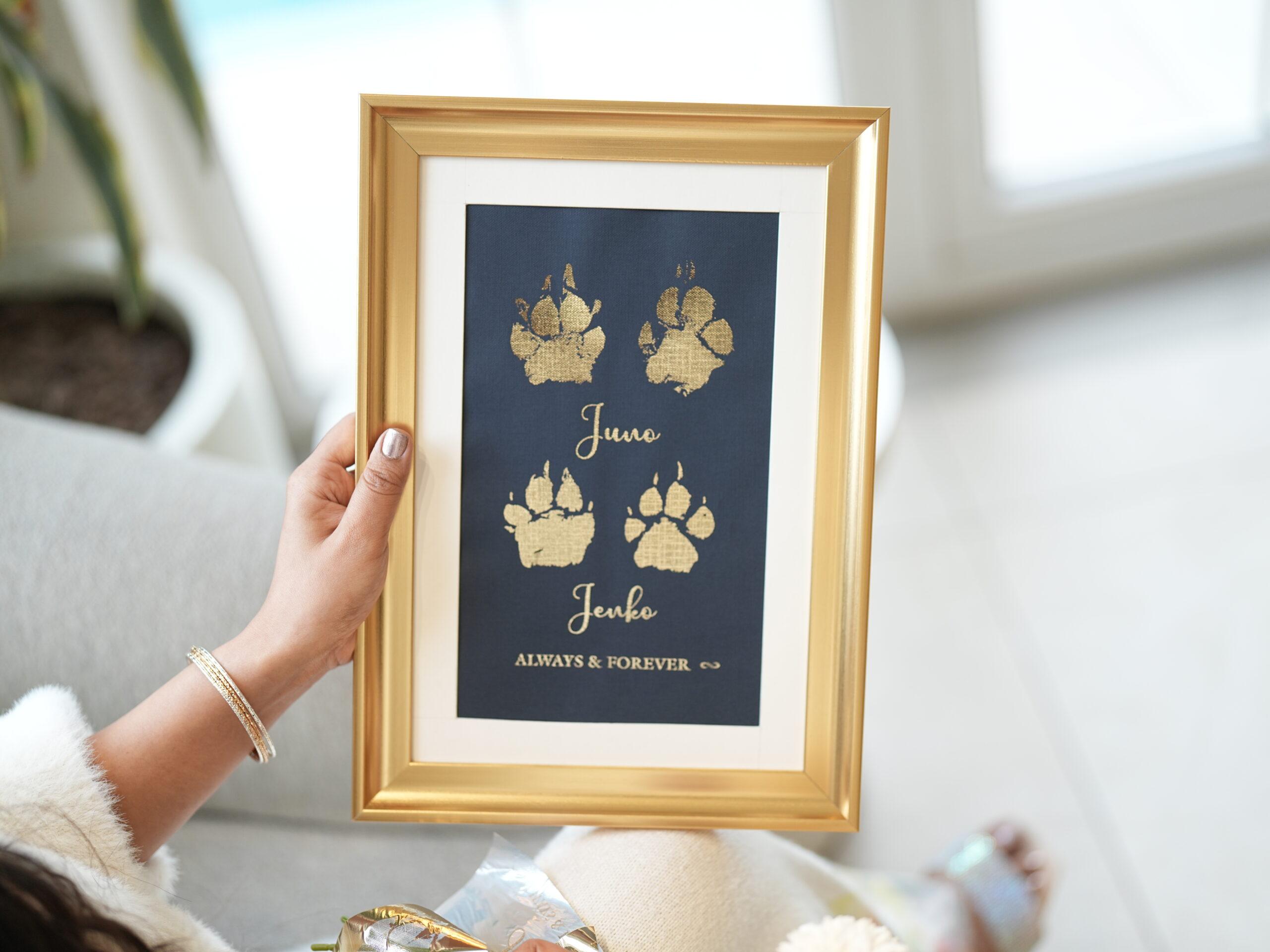 Every pet lover should definitely get this done. Our dogs live such short lives, but these paw prints will stay with us forever. The gold metallic finish looks so royal, and now my Bruno’s memory will always shine on our wall.